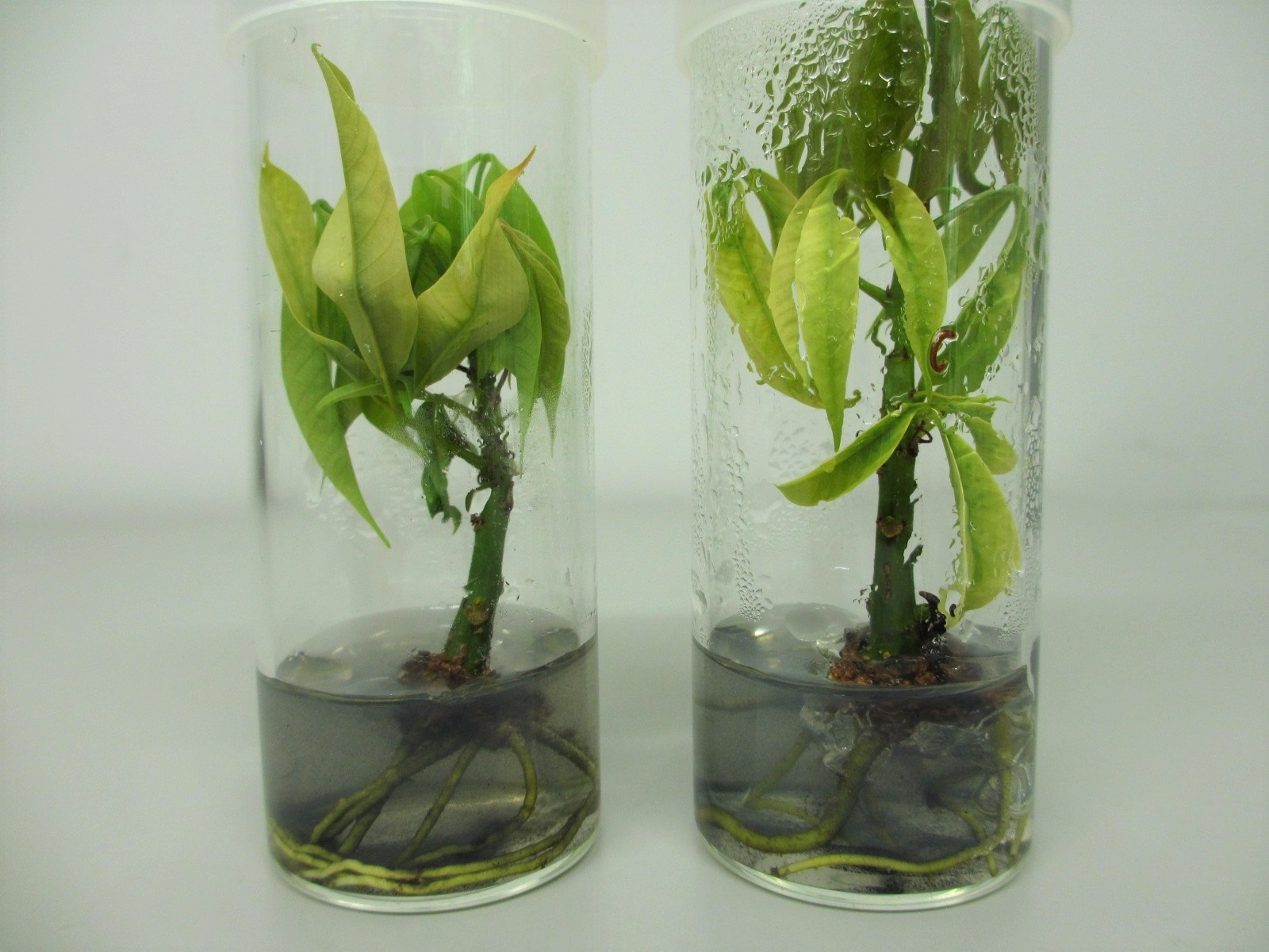 Although grafting is generally used to propagate rubber tree seedlings at present, it is significantly affected by the stock in terms of growth, disease resistance, and other aspects. Meanwhile, in a tissue culture technique, which we are working to establish, a part of the tissue of a rubber tree is isolated to be cultured in a test tube and the root and the stem are in the same plant body; this is considered beneficial for growth. Actually, it has been confirmed that the seedlings deriving from tissue culture grow faster than the seedlings deriving from general grafting in the early stage of planting (one to two years).