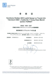 | 住友ゴム工業(株)のタイヤ製造・販売子会社であるSumitomo Rubber AKO Lastik Sanayi ve Ticaret A.S.(トルコ工場)が、このたび、環境マネジメントシステム「ISO14001:2004」と労働安全衛生マネジメントシステム「OHSAS18001:2007」の認証を取得しました。 |