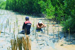 | ムサシトミヨ生息地草刈り(埼玉県) | | マングローブ植樹(タイ) |