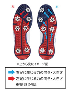 | 特長2.ゴルフの動きに適したソール設計(TGN923) |