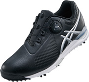 | ※防水タイプのゴルフシューズは、深さ4cmの水に浸して2時間経過しても、内部に水が浸入しない構造です。(社内法人日本ゴルフ用品協会の定める基準) | |