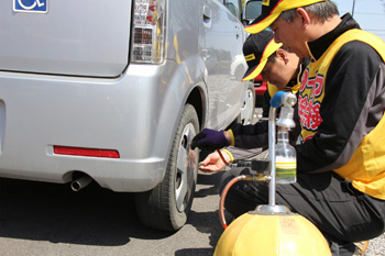 2008年から行っている「DUNLOP 全国タイヤ安全点検」は、タイヤに起因する事故の未然防止を目的に、装着されているタイヤの空気圧、残溝、表面の損傷などの点検を行う活動で、累計点検台数は延べ10万台※1を超えました。会場ではタイヤ安全点検の重要性を記載したクリアファイルを配布するなど、ドライバーの皆様に定期的なタイヤの点検、整備の必要性の啓発を行います。また安全点検を受けられた方々には、日常的なタイヤ点検を意識していただくためのメッセージを込めたマスクを、お子様には夜道で光る「ダンロップオリジナル ドラえもんリフレクター」を配布します。