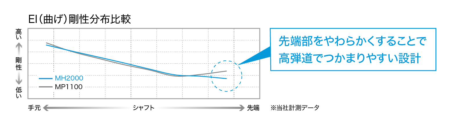 高い打ち出しでしっかり振りきれるMH2000カーボンシャフトを装着