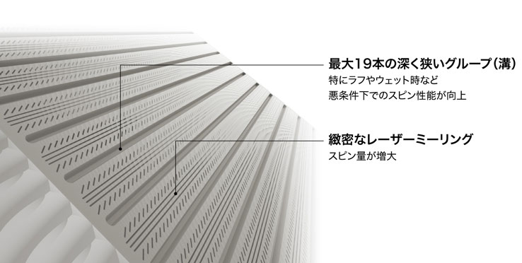 「HydraZip」と「ULTIZIP」グルーブにより、ウエット時に優れたスピン性能を発揮。