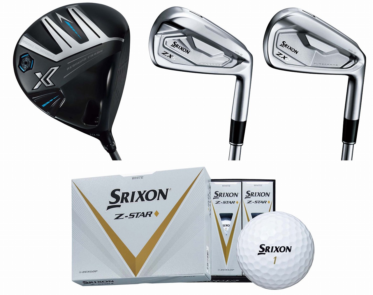 写真下段左から、「ゼクシオ エックス」ドライバー、「スリクソン ZX5 Mk Ⅱアイアン」、「スリクソン ZX7 Mk Ⅱアイアン