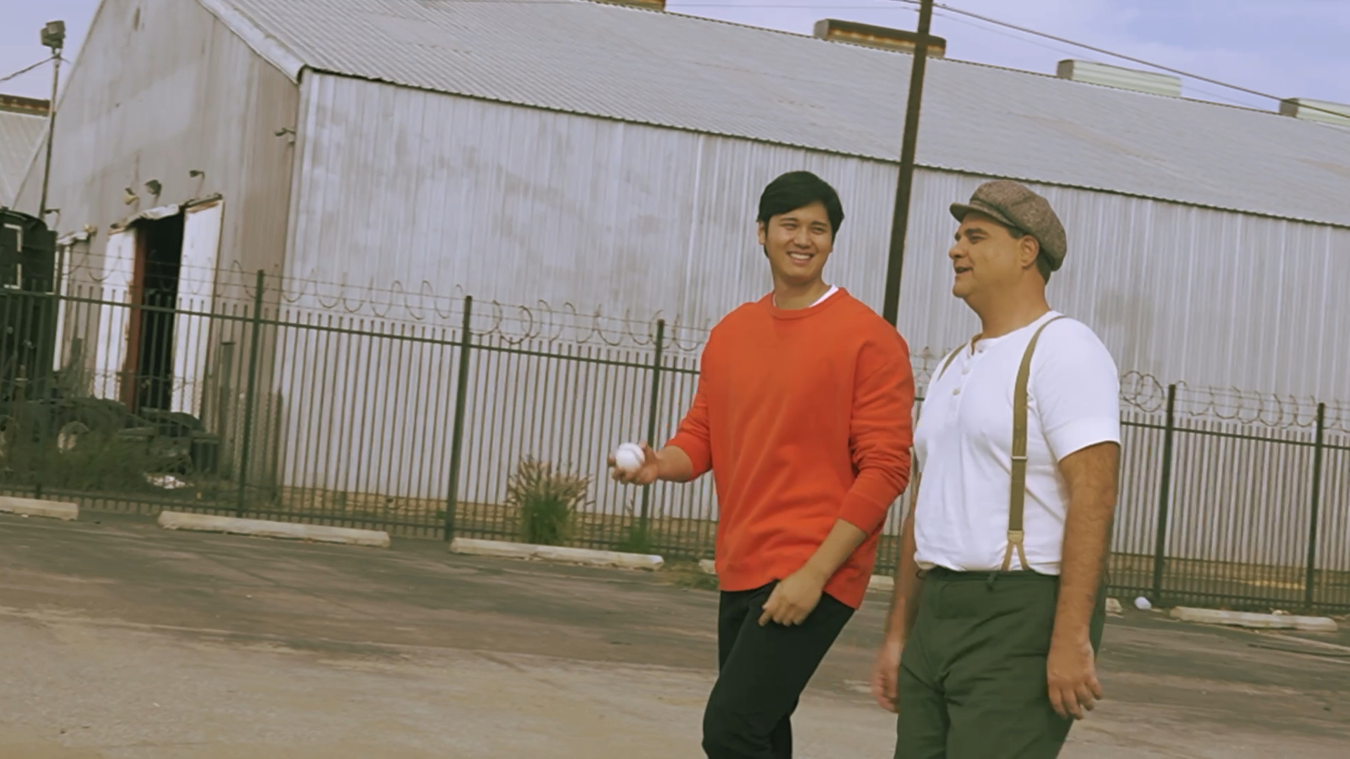 「もし伝説の大リーガーのベーブ・ルース選手が現代にいたら」という発想のもと、「リアルで人間味のあるベーブ」を追求するためにベーブ・ルース財団に協力をいただき、ベーブ・ルース役を全米から募集し、選び出しました。1月のロサンゼルスで行われた撮影では、ハリウッドのチームによる特殊メイクを施し、大谷選手との共演に臨みました。撮影された映像素材にさらにCGでディテールをプラスし、声もベーブ・ルース選手の音声を元に発音やなまりなど本人に近づけ、二人の共演は完成しました。ついに彼と共演を果たした大谷選手は自身のInstagramに「Finally got to meet him!」と喜びのストーリーズ投稿もしています。