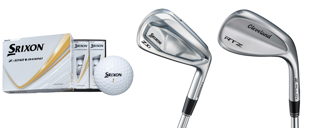 写真左から、NEW「スリクソン Z-STAR ◆ DIAMOND」、「スリクソン Z-FORGED Ⅱ アイアン」、「クリーブランドゴルフ RTZ ウエッジ」