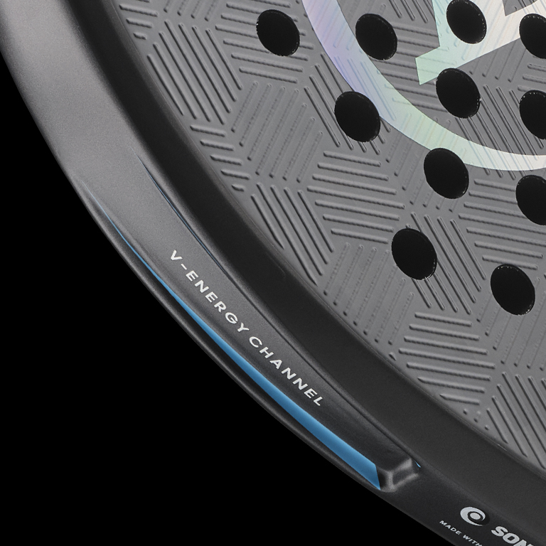 ・V-ENERGY CHANNEL(Vエナジーチャンネル): 硬式テニスラケットで実績のあるV字溝構造を応用。より柔らかな打球感を生み出します。