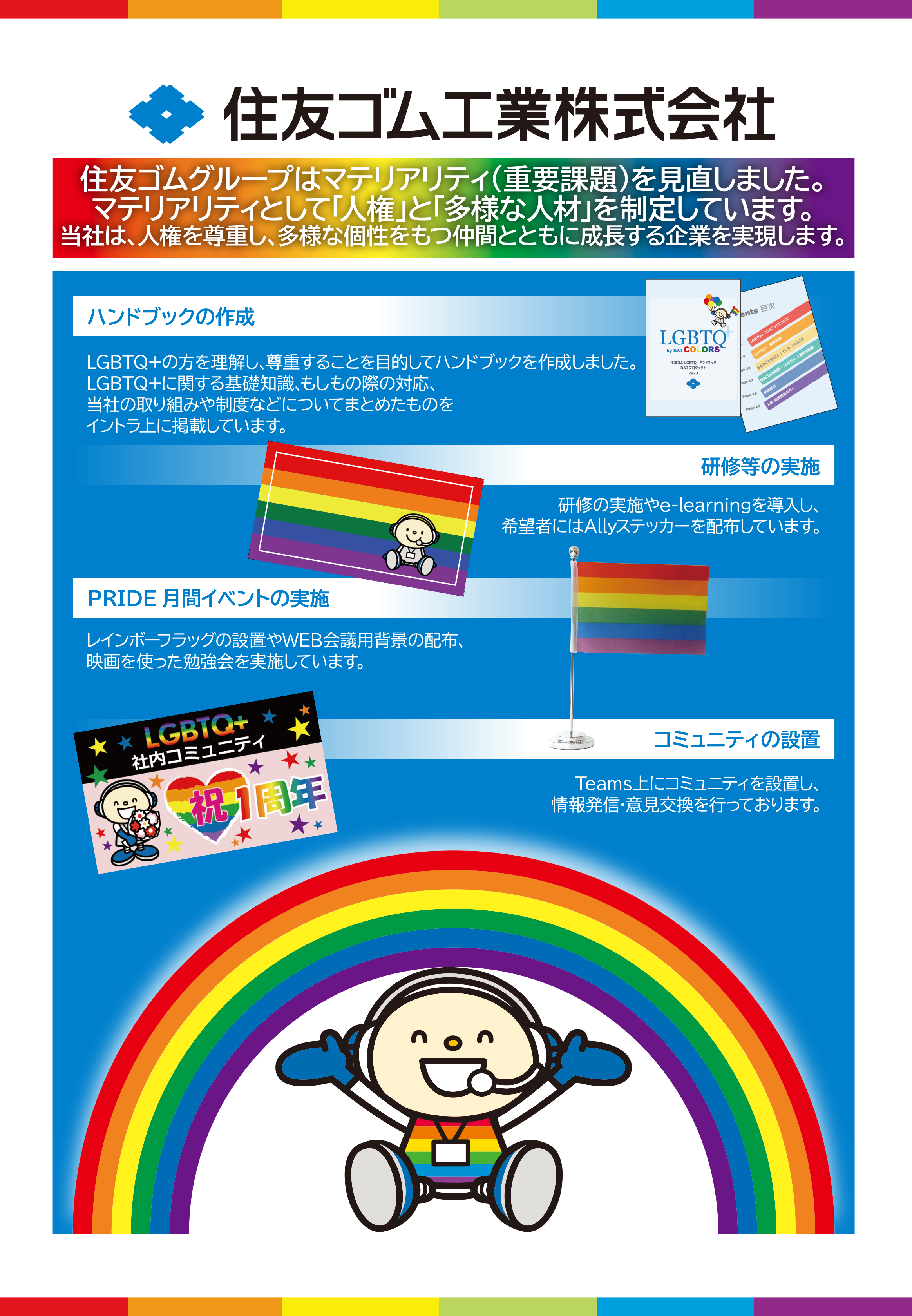 住友ゴム工業(株)は、企業・団体におけるLGBTQ+などのセクシュアル・マイノリティ(以下、LGBTQ+)への取り組みの評価指標「PRIDE指標※12025」において「ゴールド」を4年連続で受賞しました。