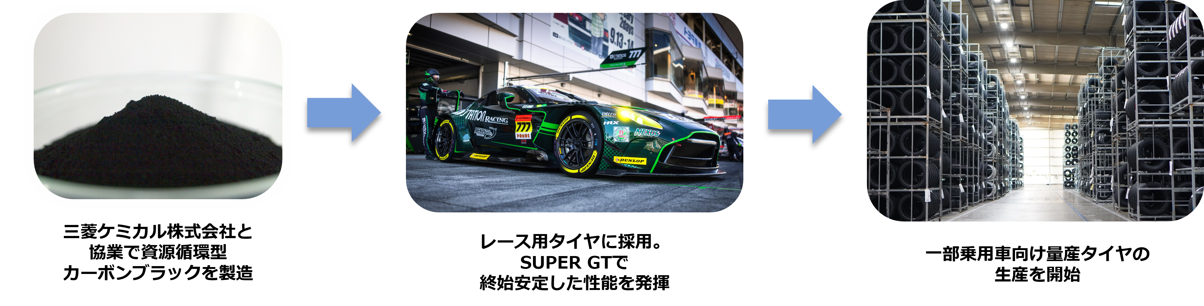 DUNLOP (社名:住友ゴム工業(株)、社長:山本悟)は、使用済みタイヤなどをケミカルリサイクル※して製造する資源循環型カーボンブラックを、一部乗用車向け量産タイヤに初めて採用しました。11月から宮崎工場で生産を開始し、資源循環の取り組みを加速します。