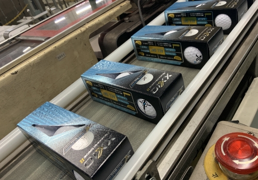 ボールにスタンプ、ペイントを行う工程です。受注でオウンネームマークをスタンプする工程です。