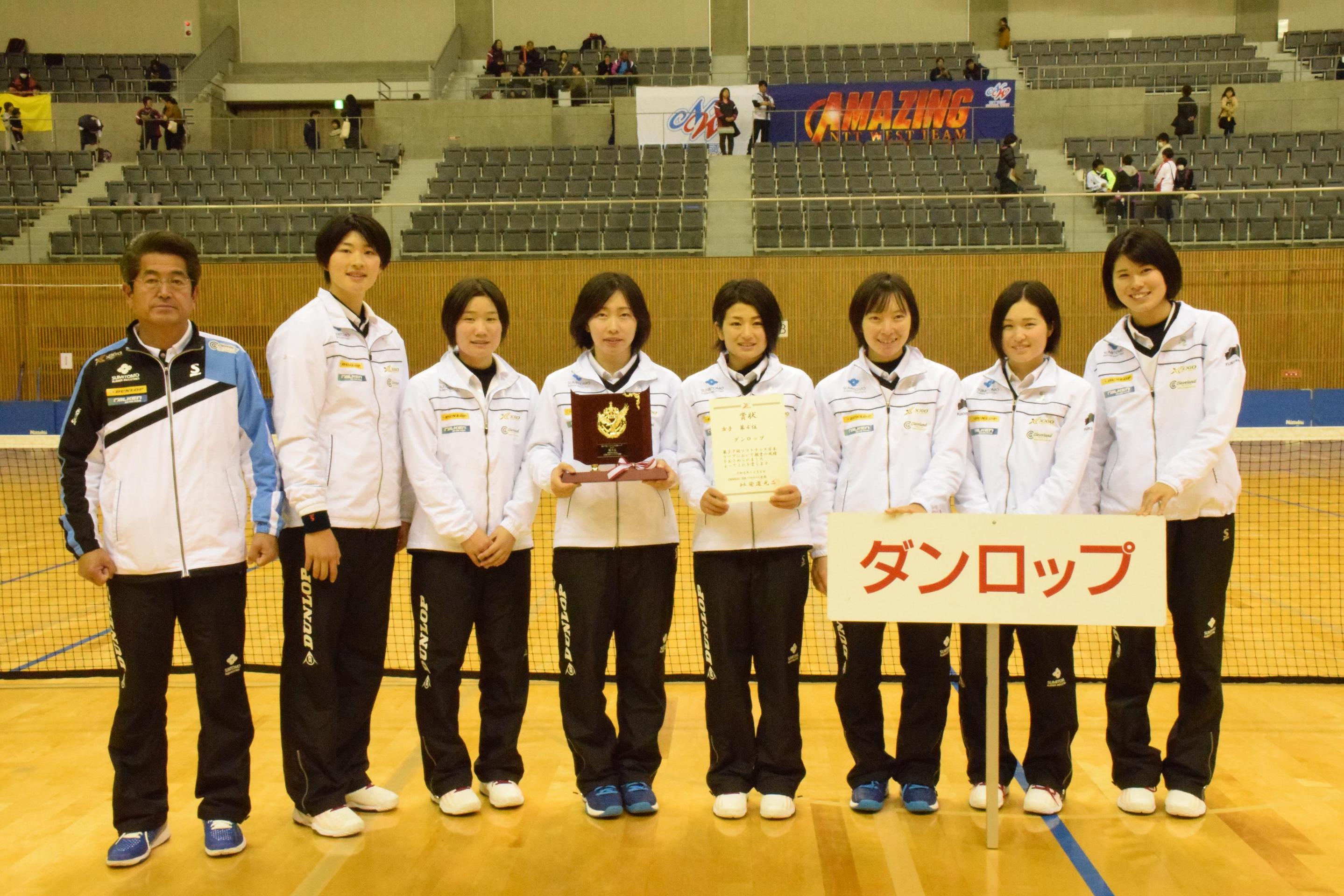 ソフトテニス実業団「チームダンロップ」は12月6日から8日まで「スカイホール豊田」(愛知県豊田市)で開催されていた「第37回 ソフトテニス日本リーグ」に出場し、4勝3敗で総合4位でした。来年に向けて、また新たに始動していきますので応援よろしくお願いします。